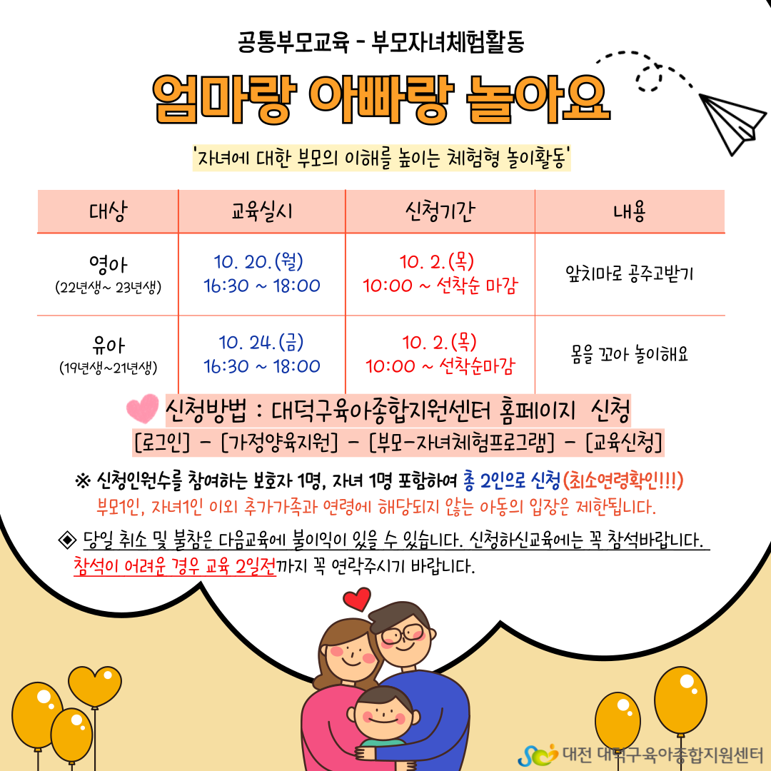 (2023년생 ~ 2022년생) 부모-자녀체험프로그램 <앞치마로 공 주고받기>