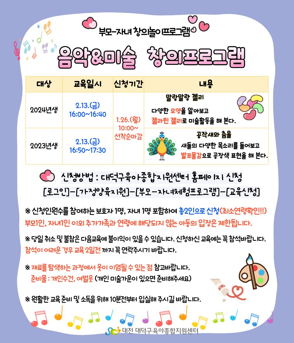※ 예약신청 시 부모와 아이가 함께 참여하는 프로그램으로 1가족당 2으로 신청해주셔야 합니다.