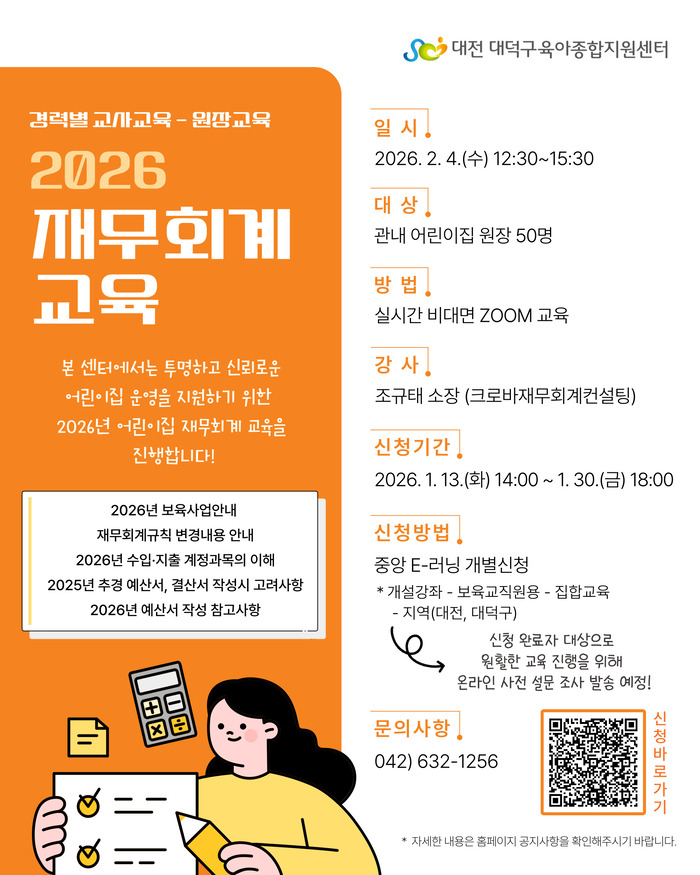 [어린이집지원사업] 2026년 원장 교육 - 어린이집 재무회계 교육 안내