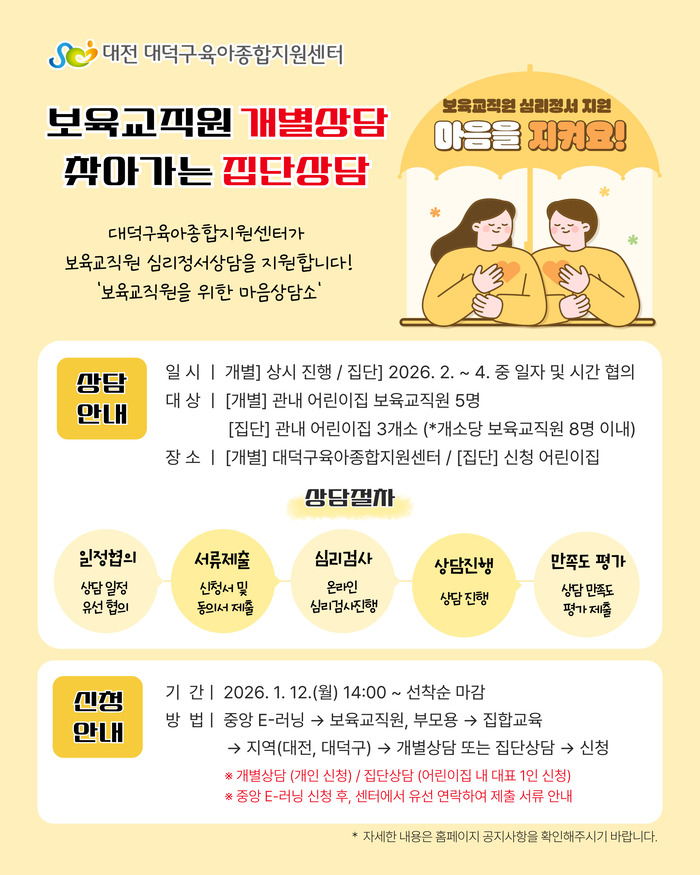 [어린이집지원사업] 2026년 보육교직원 심리정서 상담 안내 (개별 및 집단상담)
