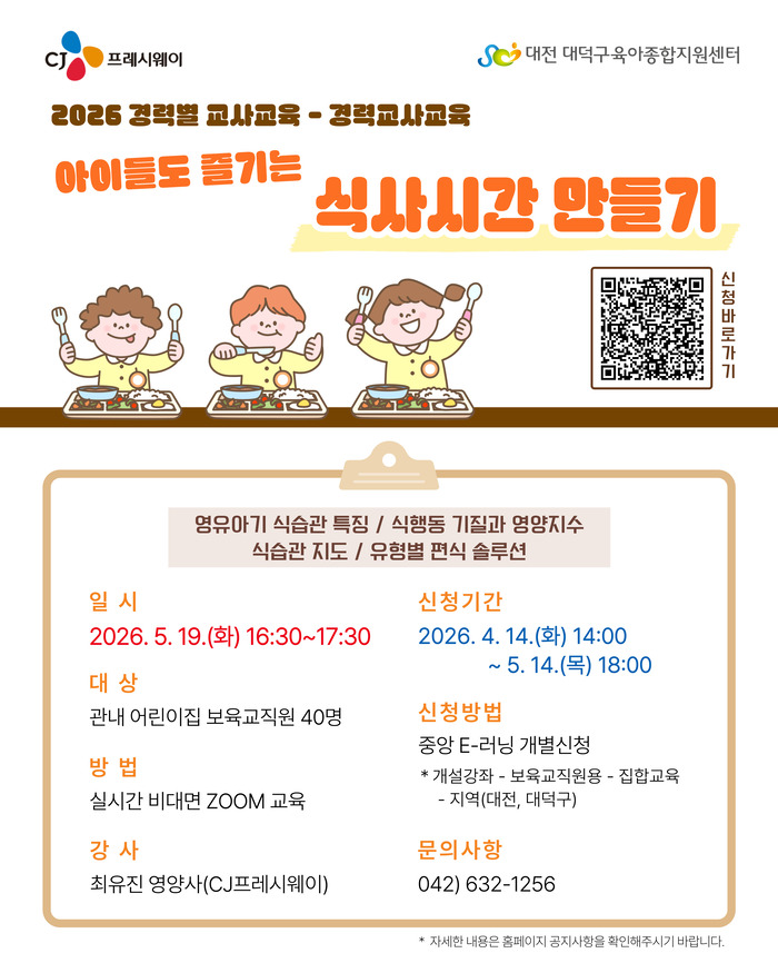 「2026년 경력교사교육 - 아이들도 즐기는 식사시간 만들기」를 진행하고자 합니다.