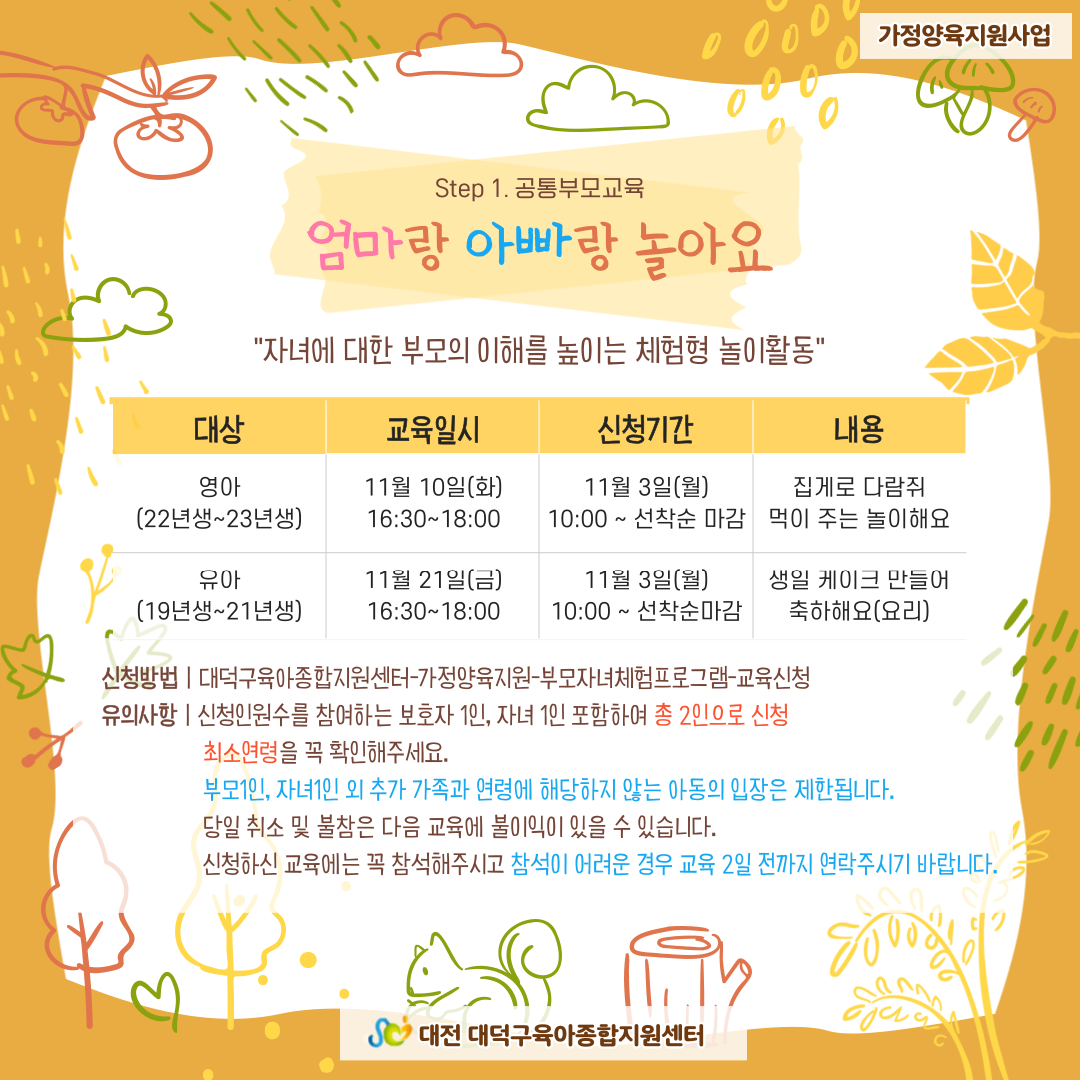 (2023년생 ~ 2022년생) 부모-자녀체험프로그램 <집게로 다람쥐 먹이 주는 놀이해요>