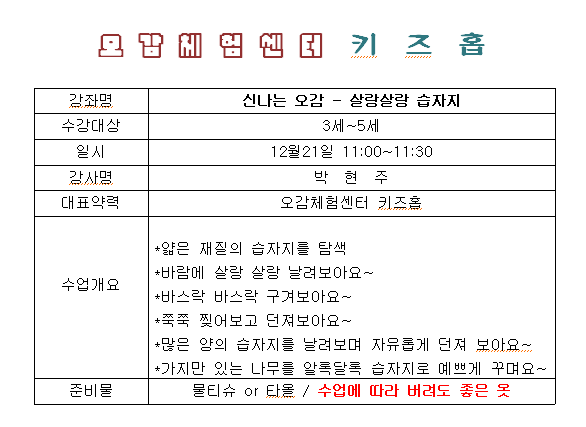 ☺ 2020년에는 프로그램과 요일 및 시간이 변경될 수 있습니다.