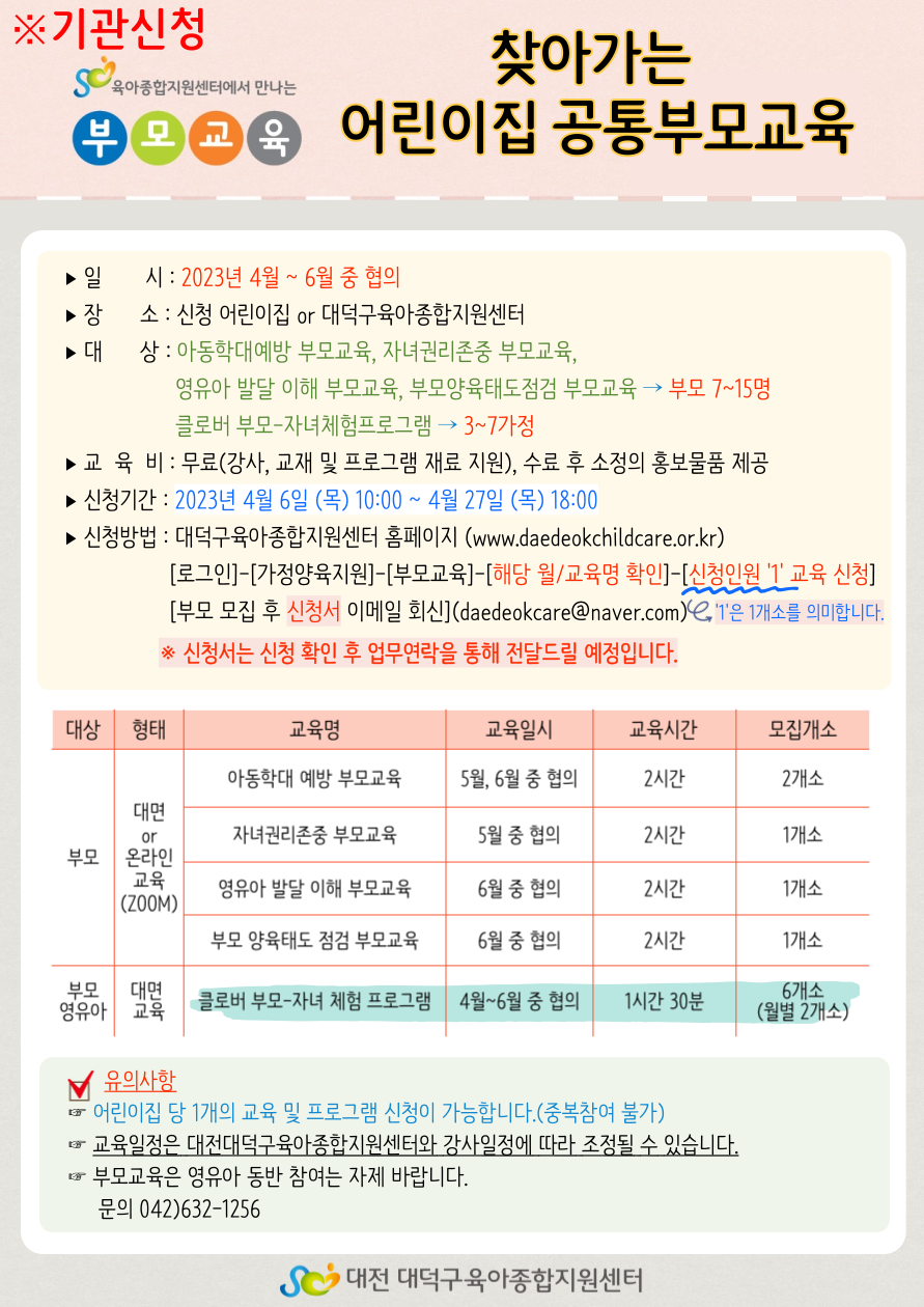 2023년 찾아가는 어린이집 공통부모교육 4~6월 모집