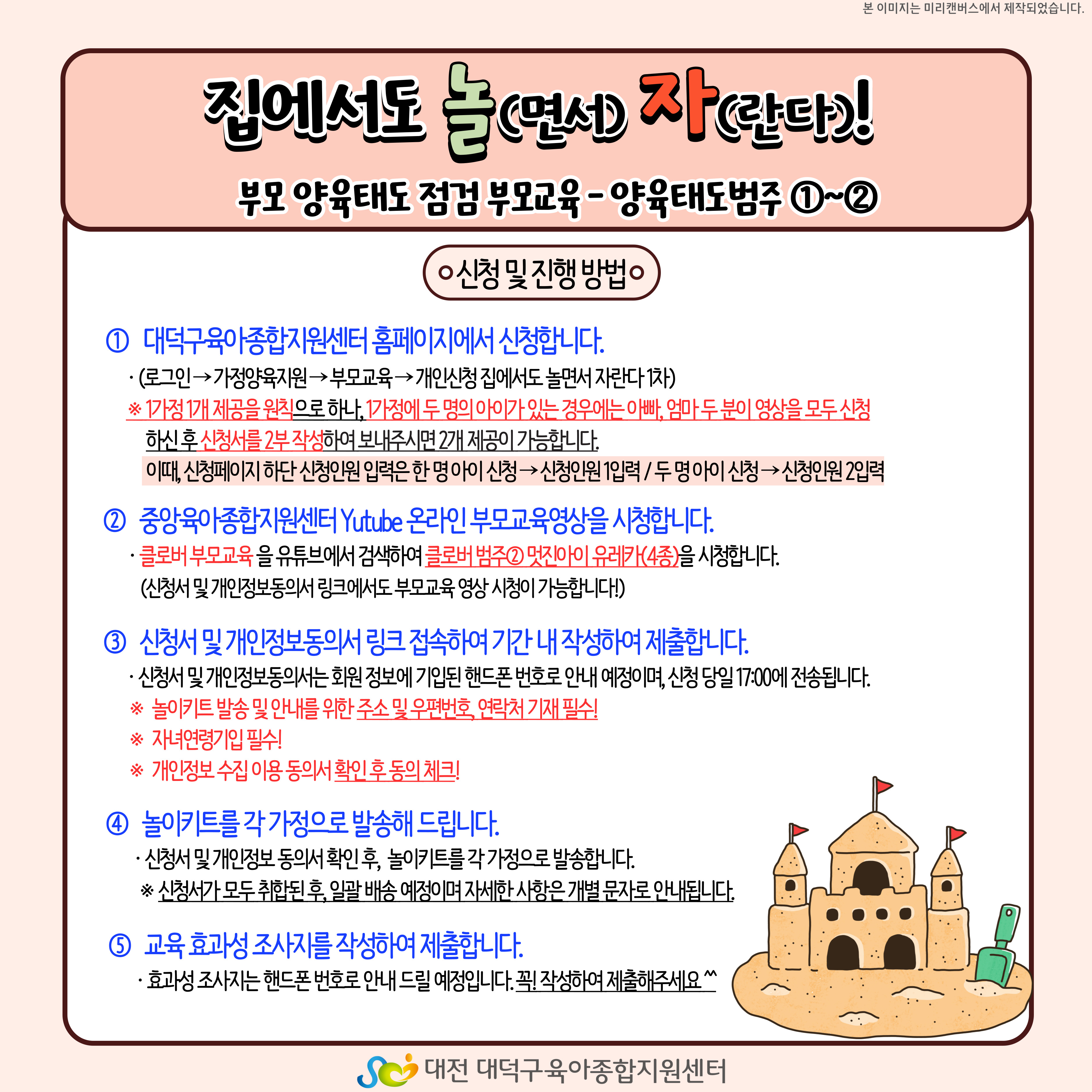 * 홈페이지 신청 후 4종의 온라인 부모교육 영상을 모두 시청해주시기 바랍니다.