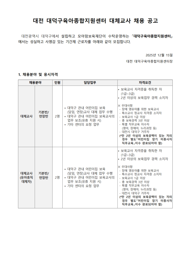 붙임12025년대전대덕구육아종합지원센터대체교사채용공고문.pdf