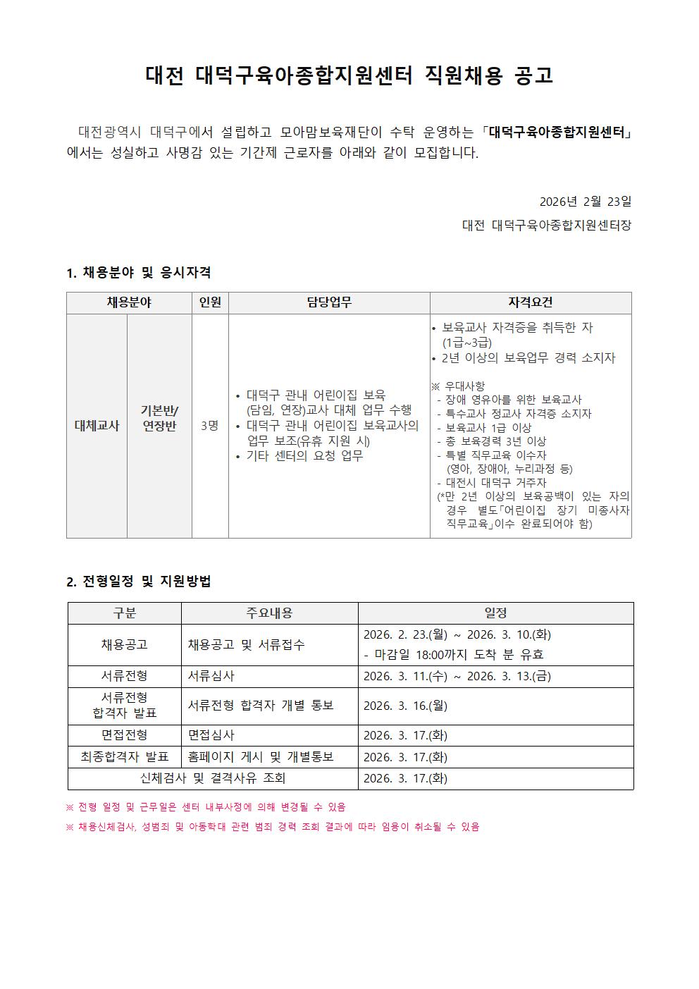 붙임12026년대전대덕구육아종합지원센터대체교사채용공고문.pdf