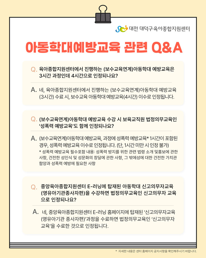 본 센터에서는 보수교육과의 연계성 강화 및 아동학대에 대한 예방, 대처방안의 역량강화를 위한