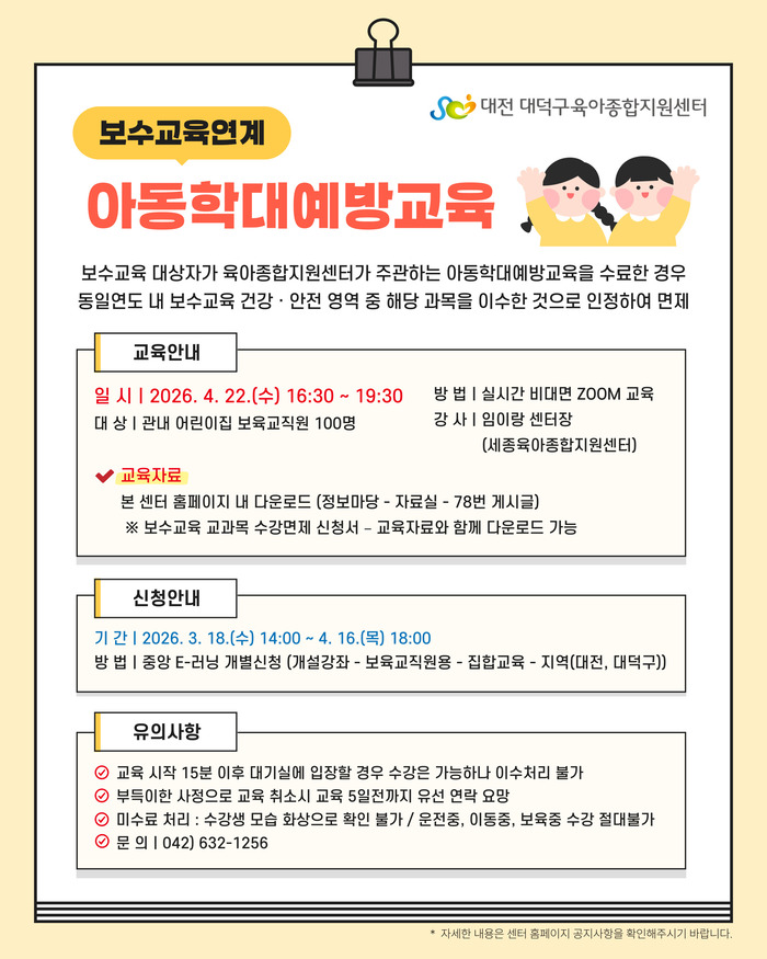 [어린이집지원사업] 2026년 보육교직원 보수교육연계 아동학대 예방교육
