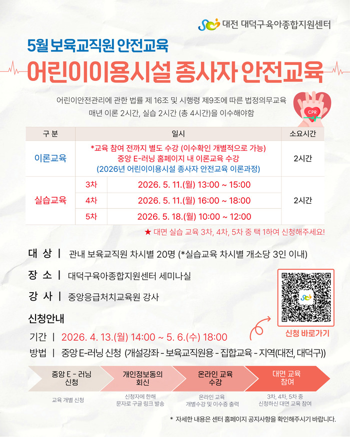 [어린이집지원사업] 보육교직원 안전교육 - 2026년 어린이이용시설 종사자 안전교육(5월)