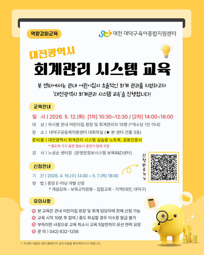 [어린이집지원사업] 2026년 역량강화교육 - 대전 회계관리 시스템 교육 안내