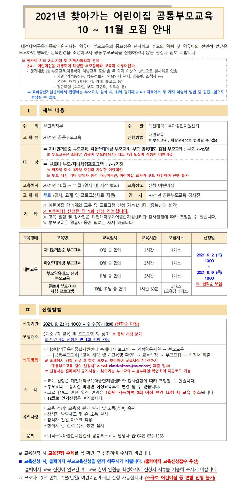 [공통부모교육] 2021년 찾아가는 어린이집 공통부모교육 10~11월 모집