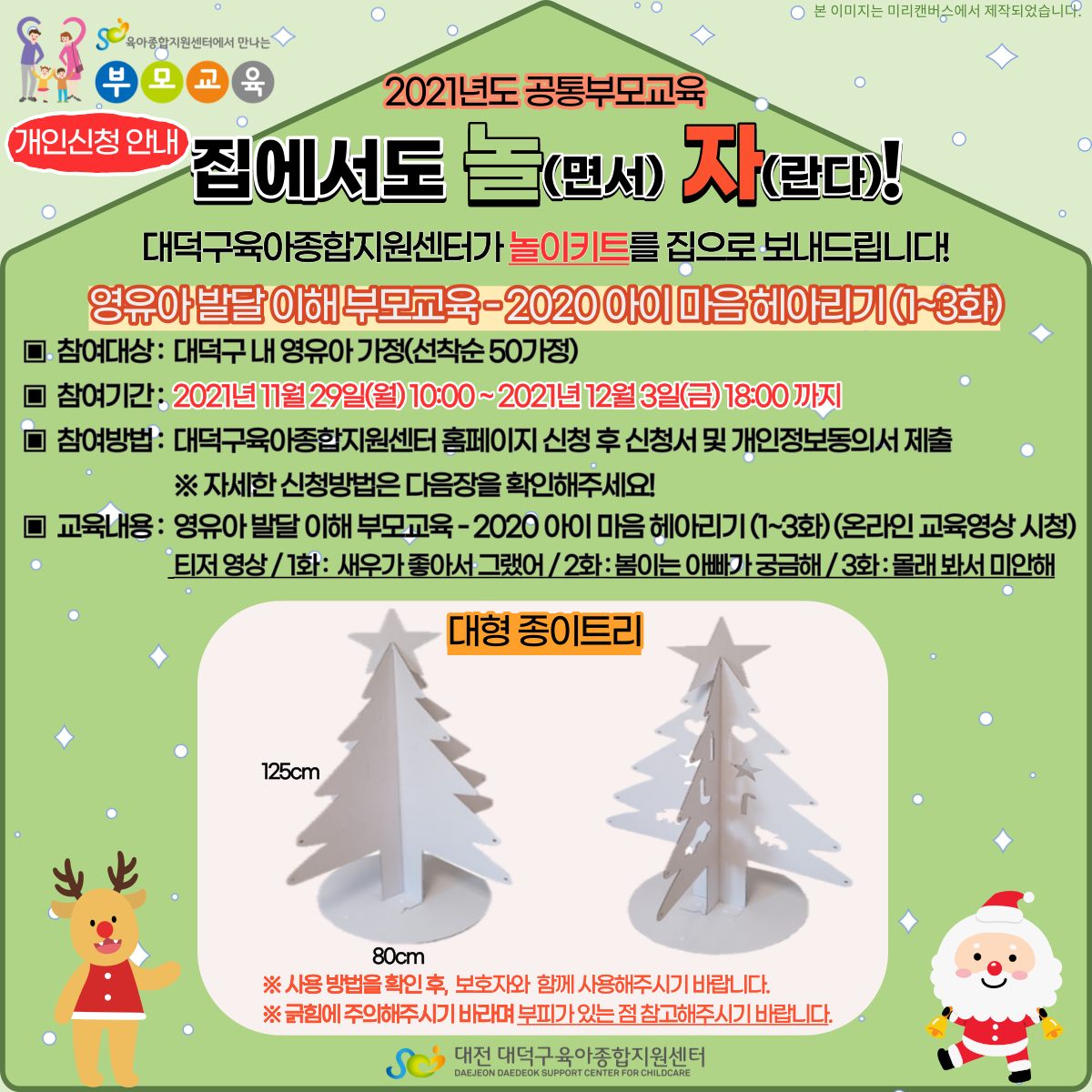 ※ 1가정 1개 제공을 원칙으로 하며, 1가정에 두 명의 아이가 있는 경우에는 아빠, 엄마 두 분이 영상을 모두 시청하신 후 신청서를 2부 작성하여 보내주시면 2개 제공이 가능합니다.